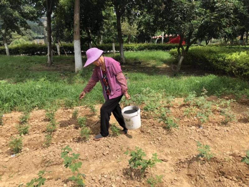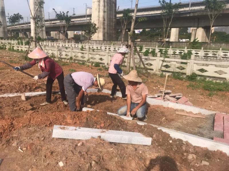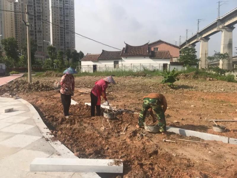 為確保小游園建設,園林人不畏酷暑堅持在一線工作