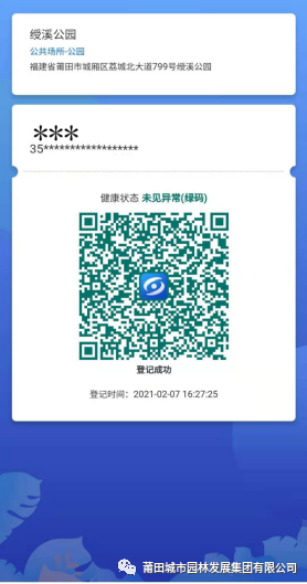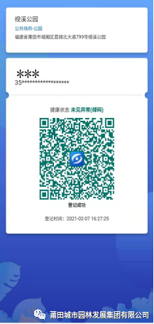 4.顯示“登記成功”。 三、入園后,請(qǐng)游客自覺(jué)做好防范措施,不聚集、不扎堆、有序游玩、保持1米以上安全距離。 四、若有異常情況,請(qǐng)配合工作人員轉(zhuǎn)移,并登記個(gè)人信息,按規(guī)定流程處置。 五、游客接待量超過(guò)公園最大承載量的75%時(shí),公園將實(shí)行限流管控,請(qǐng)自覺(jué)排隊(duì)等候。 六、若您有困難,請(qǐng)持智能手機(jī)前往公園入口處,工作人員、志愿者將給予幫助,方便順利入園。 七、園區(qū)游客較多,公園綠道自行車限行,造成不便,敬請(qǐng)諒解。