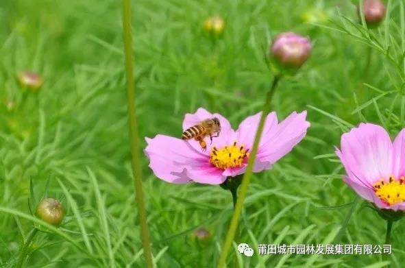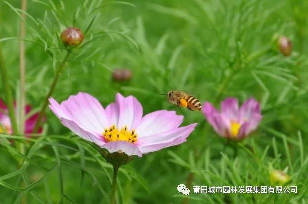 ▲挎著小花籃,從這朵花飛到那朵花上,忙著采集花粉。
