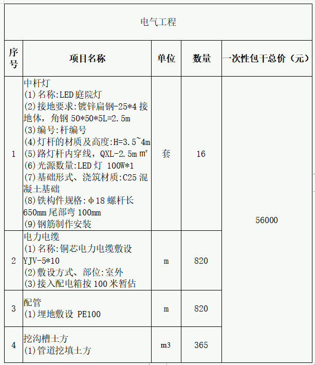 3.質量要求:合格。應符合現行國家或行業有關規定、標準、規范的要求。 4.本項目最高報價不得高于56000元(含稅,開具增值稅專用發票),項目驗收合格后請乙方開具相應的增值稅專用發票,若發票無法報銷與甲方無關。 5.項目工期:15日歷天。 二、 投標人資格要求及審查辦法 1.投標人資格要求 (1)投標申請人須在中華人民共和國合法注冊、具有獨立法人資格,營業執照經年檢有效。 (2)本招標項目要求投標人是莆田城市園林發展集團有限公司招標采購庫內的企業。 (3)投標人提供的相應證明材料復印件均應符合:內容完整、清晰、整潔,并由投標人加蓋其單位公章。 2.中標方式采用 低價中標法 。 投標人應根據招標要求自行報價,投標報價不得高于控制價,超過最高限價為無效報價,本項目單價報價最低即為中標單位,若單價最低價報價相同,我單位會另行通知相關部門進行隨機抽取1家中選單位。投標人的投標報價應包含招標所要求的可能發生施工費用(含現場施工人員安全、不可預見費)以及應由投標人支付的稅金等一切費用。 三、 投標文件的遞交 1.各單位在規定截止時間前,在莆田城市園林發展集團招標采購網(http://www.zgjkspzxzxw.com/ztb.html)線上報價和上傳公開詢價報價表(須加蓋公章),無加蓋公章或材料不齊全,視為無效報價。 2.截止時間:2023年2月27日上午11點整。 四、 違規處理 中標后,拒絕按中標價格承接業務、不得以任何理由拒絕承接應急采購項目、未在通知要求時間內不與發起部門簽訂合同,導致項目建設進度滯后或影響材料供應,3年內取消申請入庫資格。 五、 聯系方式 聯系人:朱工 聯系電話:0594-2259188 附件1:公開詢價報價表/upload/202302/24/202302241648471337.xlsx 附件2:路燈參照樣圖/upload/202302/24/202302241648571494.png 莆田市綬溪建設開發有限公司 2023年2月24日