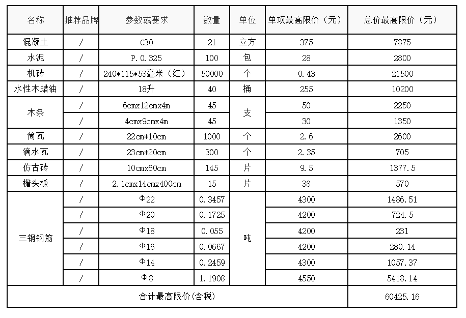 一、報價要求 (一)自行下載附件,按我公司發出的產品規格要求及單位數量填報完整資料,并加蓋公司印章后以圖片形式上傳至響應文件。 (二)本批采購設單項最高限價和總價最高限價,報價時,不可超出本批采購的單項及總價最高限價范圍。 (三)本次采購供應商報價包含稅,開增值稅專用發票。 二、評標方式:本項目采用總價最低價中標法。(若中標價相同,將采取隨機抽取方式選擇1家中標單位)。 三、送貨方式: (一)供貨地點: 赤溪古橋旁 (二)供貨次數:分 1 次供貨。 (三)供貨時間:根據甲方通知給予送貨,3日內須到貨并按照業主指定的位置堆放。 注:未滿足上述“報價要求”中任意一點,將直接視為無效報價。中標后,拒絕按中標價格承接業務、不得以任何理由拒絕承接應急采購項目、未在通知要求時間內不與發起部門簽訂合同,導致項目建設進度滯后或影響材料供應,3年內取消申請入庫資格。 聯系人:小蔡 聯系電話:0594-2259188 附件: 1、公開詢價報價表/upload/202303/17/202303171645333974.xlsx 2、材料樣圖/upload/202303/17/202303171645550771.rar