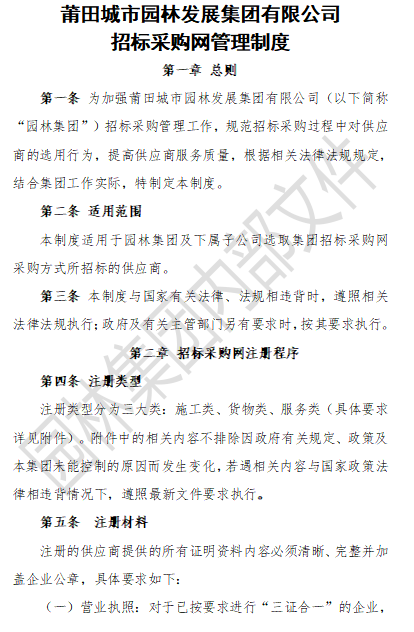 莆田城市園林發展集團有限公司關于印發招標采購網管理制度的通知