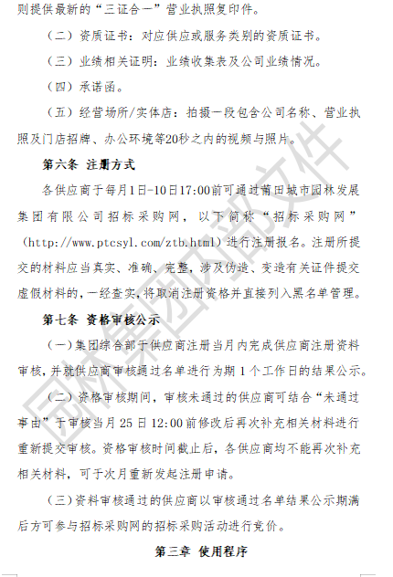 本制度為莆田城市園林發展集團有限公司內部文件,僅供查閱,未經書面授權,各供應商禁止以任何形式轉載、復制及商業使用,否則視為侵權!
